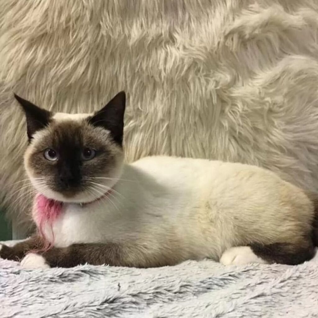The Siamese cat was calm, friendly, and clearly comfortable around people.