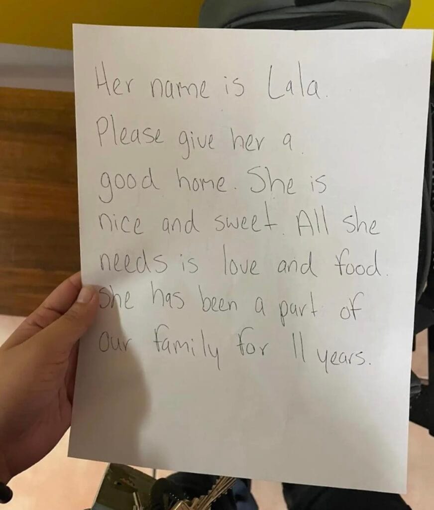 The note explained that Lala had been part of her family for 11 years.