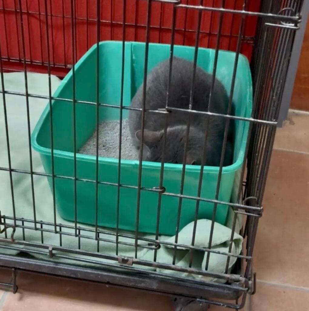 By the time staff arrived the next morning, Lala was still there. Alone, frightened, and sitting in the same crate where anything could have happened overnight.
