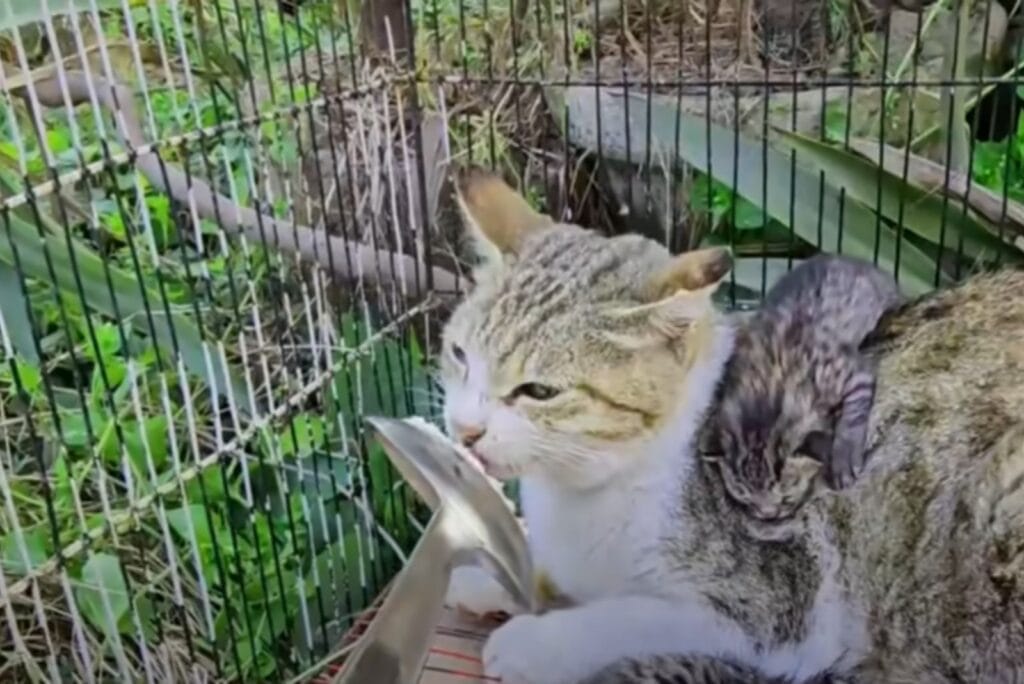 Life on the streets is never easy, especially for cats who have little ones to protect.