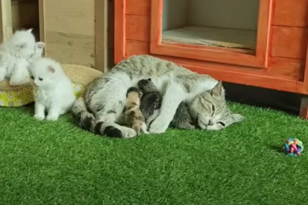The kittens nursed, played, and explored, while their mother watched proudly.