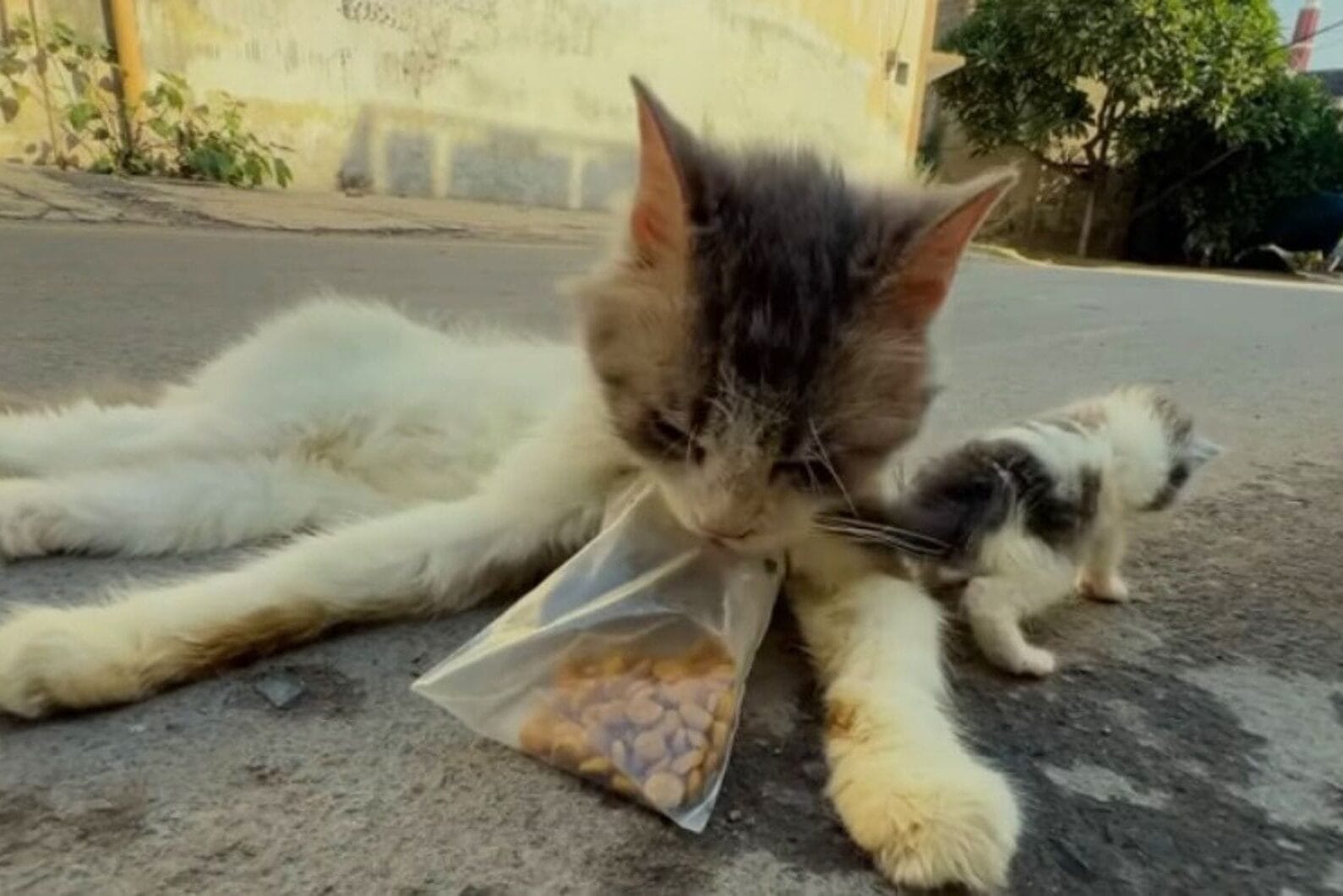 Mama Cat Was Found Carrying Her Kitten In A Food Bag But What Rescuers Discovered Next Left Them Speechless