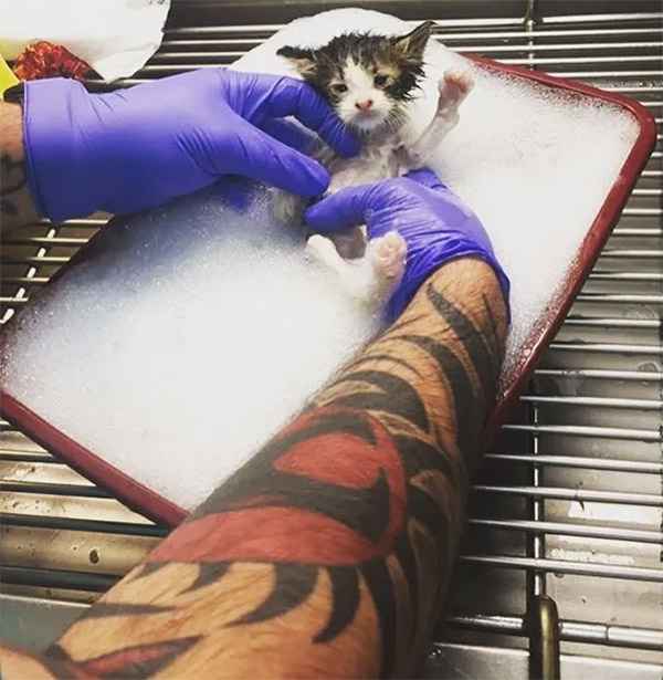 Ԍettinɡ a kitten all сleaneԁ սp with a ɡentle bath.