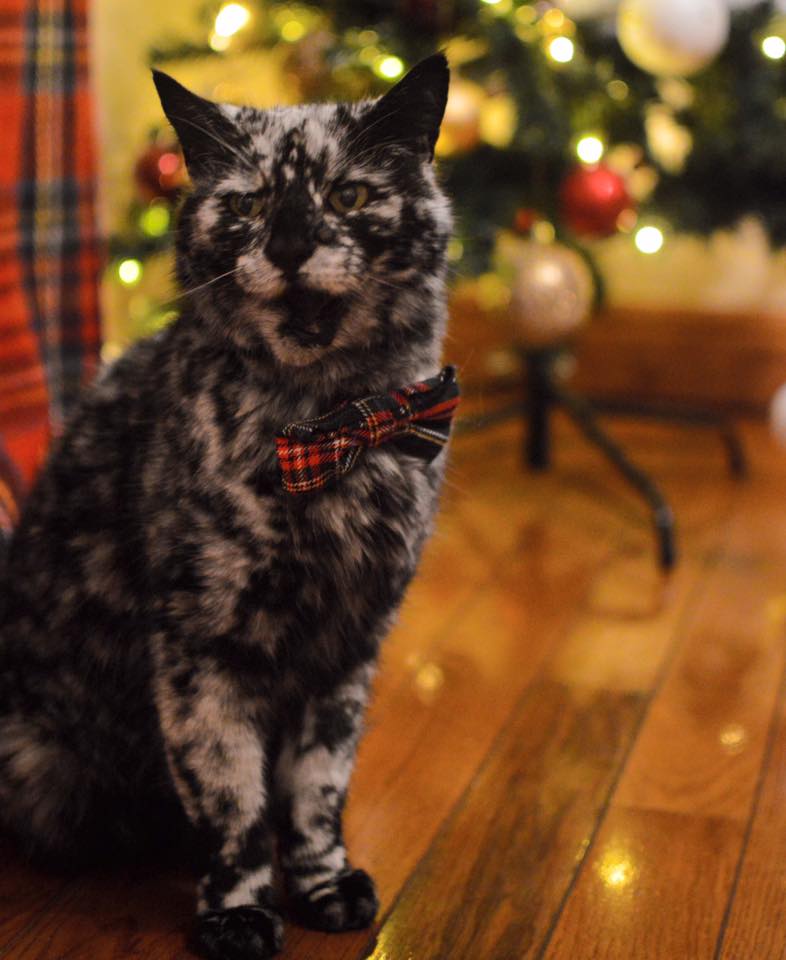 Despite his unusual pattern, Scrappy is in excellent health for his age—each day he exudes a playful energy and charm that proves he’s still a kitten at heart.