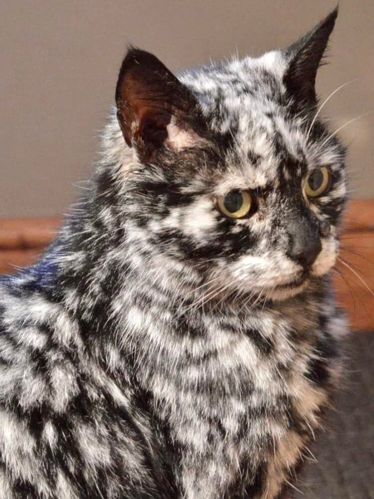 Today, as he approaches 18 years old, Scrappy’s unique camouflage is more pronounced than ever.