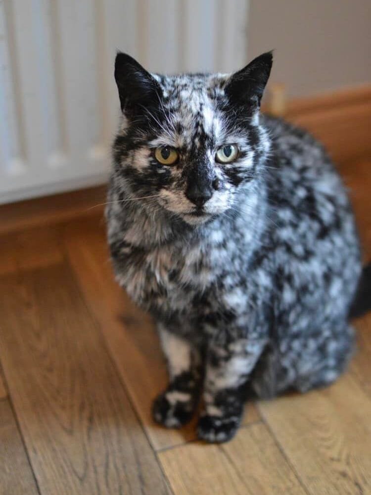 In just a few short months, white spots began to emerge on his fur—a rare condition known as vitiligo.