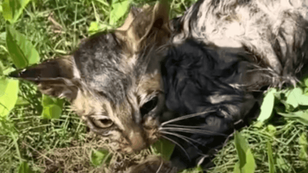 There’s no telling what the kitten went through before that fateful moment by the river.