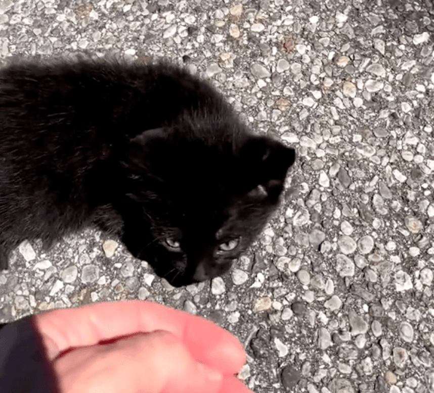 What he found was not a piece of litter or a shadow, but a little black kitten, huddled and crying for help.