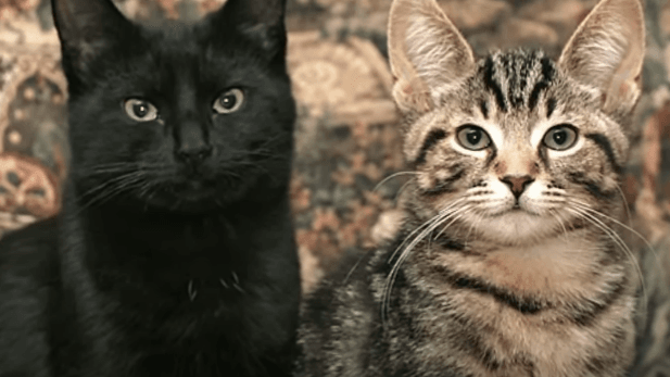 One was striped, the other a sleek black feline with fur so shiny it caught the sunlight like polished glass.