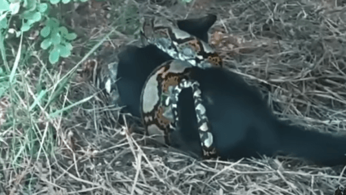 It was completely still, caught in the powerful grip of a massive python.