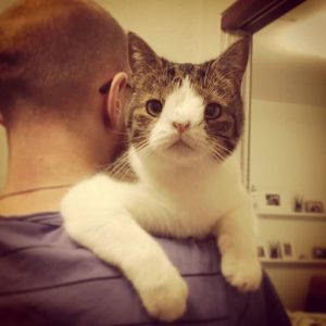 “Monty shared a room with some of the other cats from the animal shelter [that] acted a little aggressive, [but] Monty [remained] uneager to pick a fight.”