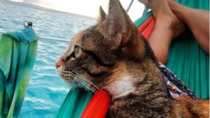 Since November, Lisa Clark has been sailing across the world with her cat Amelia aboard a fiberglass yacht.