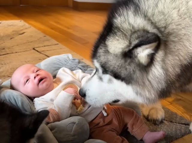 As Teddy’s mother observes the scene, she is unfazed by the chaos that comes with being a new parent. Instead, she savors every moment with her child, even if it means being under the supervision of her furry companions.