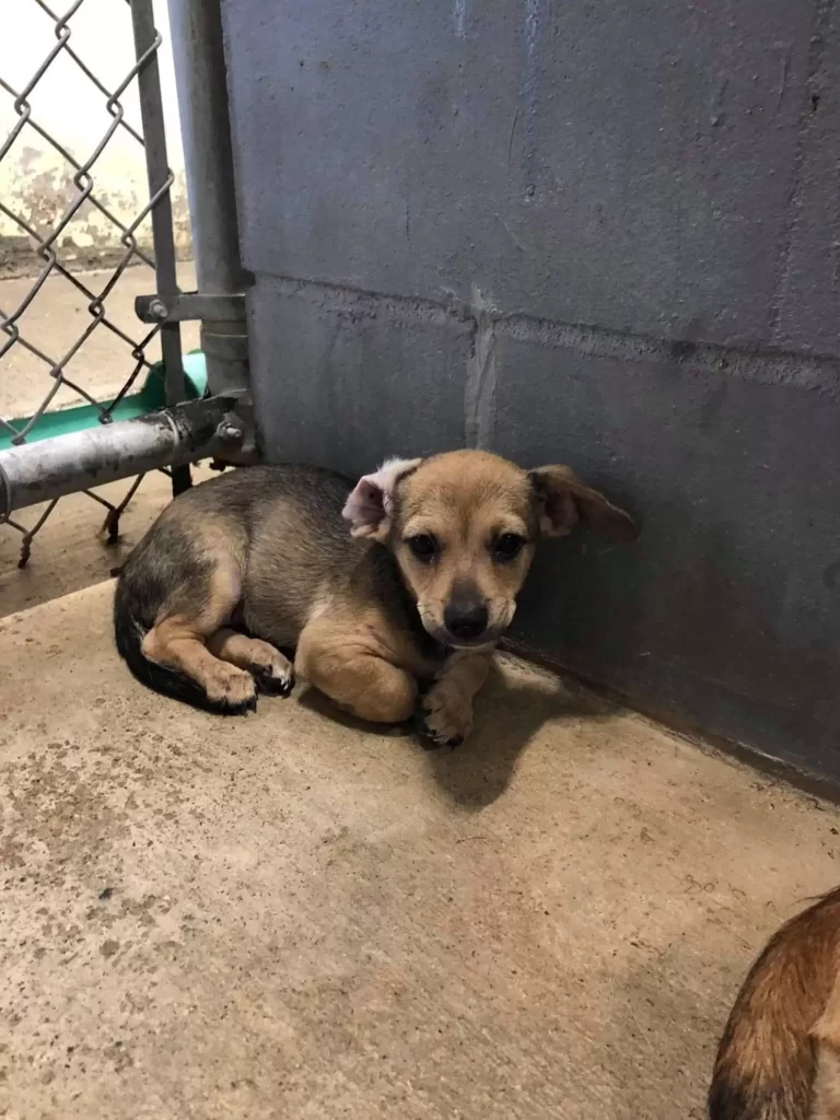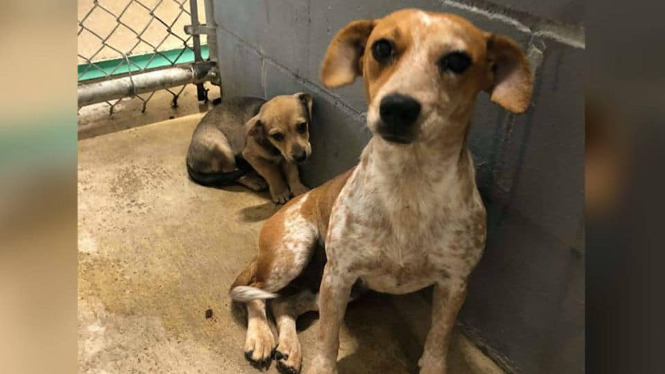 In the crowded corners of a rural South Texas shelter, a mother dog curled her body protectively around her only puppy.