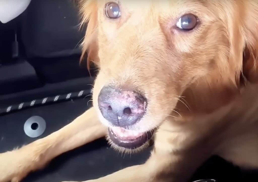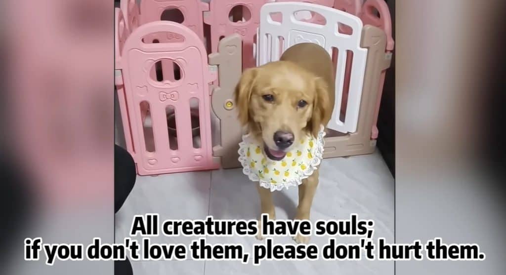 The dog flinched at first.