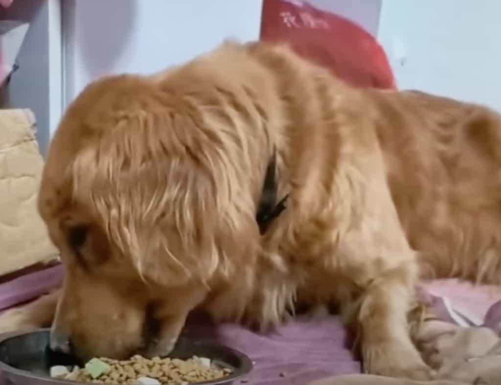 The mother dog began to eat without fear.