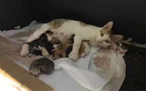 On her way to work one day, Yvonne came upon a hugely pregnant stray cat on the street.