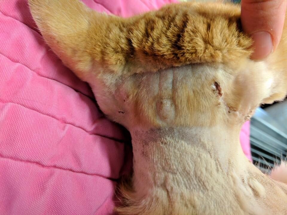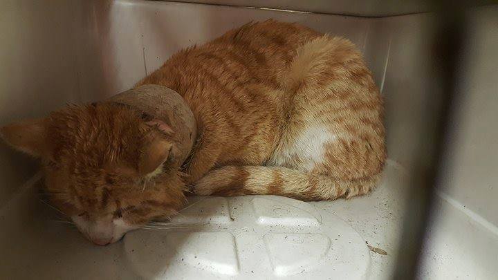 In a race against time, emergency surgery was performed to clean the wound and stitch up the deep cuts along the kitten’s neck.