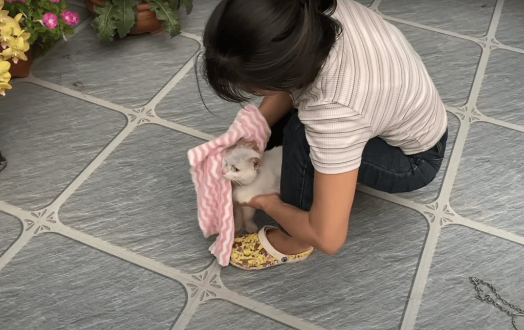 The woman cradled the trembling feline and hurried her away from the desolate spot to a place where care and compassion awaited. Upon arriving at her home, the real work began.
