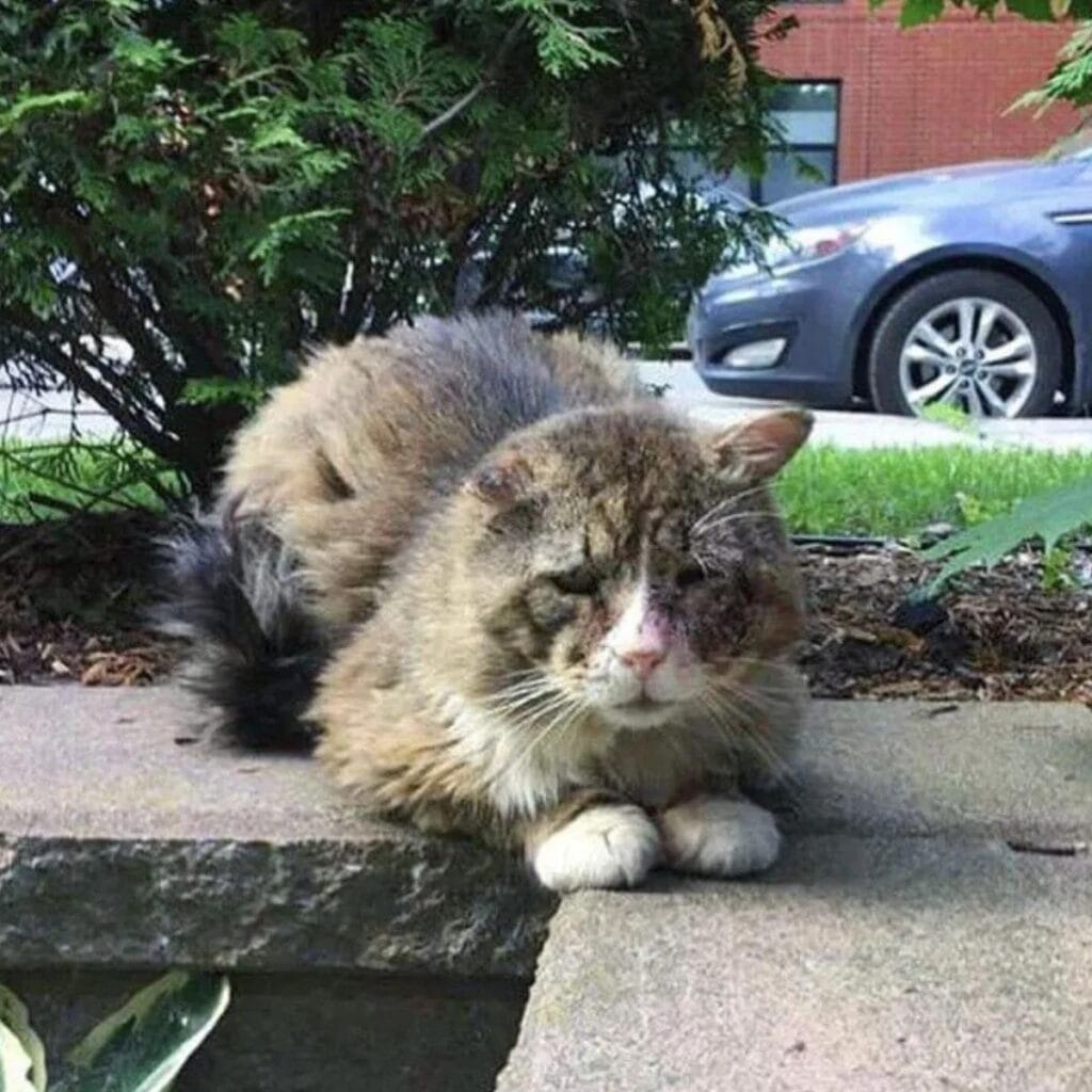 Not every stray cat survives the roughness of the streets, but some carry their scars in plain sight.