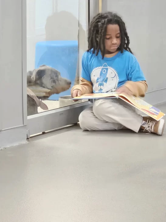 Nehemiah, just 9 years old, spends a half hour with each dog as part of the Pawsitive Readers program. It’s a simple idea—kids read aloud to shelter animals. But the impact is powerful.