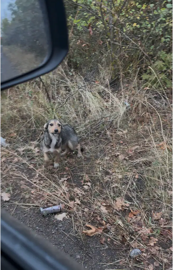 On the side of the road, barely visible through weeds and broken leaves, she saw movement.