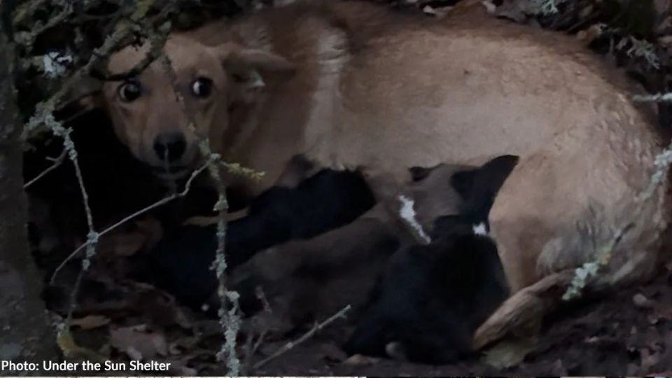 Tiny puppies were huddled against their mothers, shaking and silent.