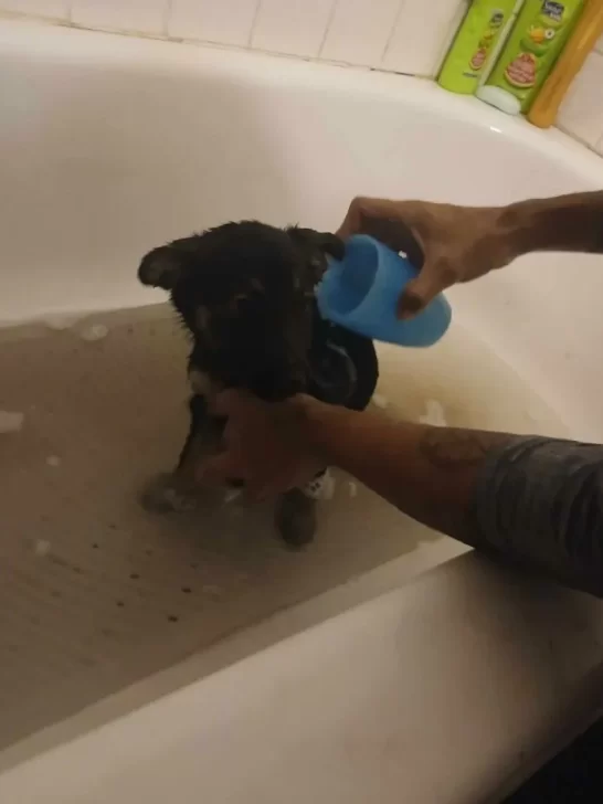 Thankfully, the seven-week-old puppies were healthy, though they had been plagued with fleas. But nothing a good flea bath couldn’t fix!
