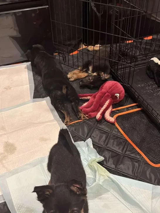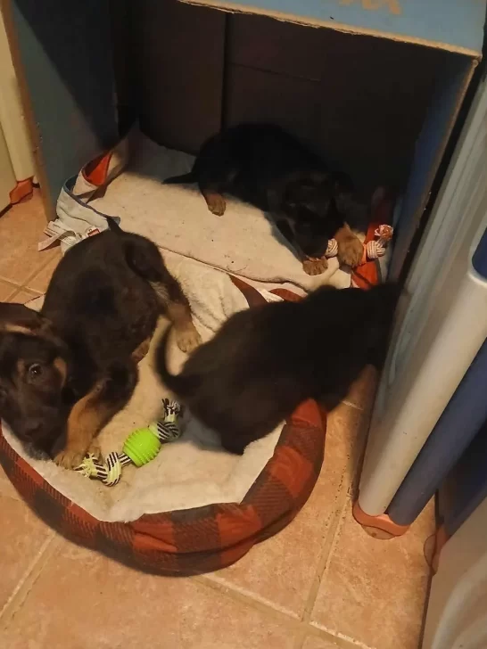 Upon seeing the post, a kind-hearted Facebook user reached out to Sauver Des Chiens German Shepherd Rescue (SDC), knowing they would be the perfect organization to help these sweet souls. But since SDC couldn’t get there right away, this woman decided to take matters into her own hands. She drove to the apartment complex, picked up the pups, and brought them to her warm, loving home.