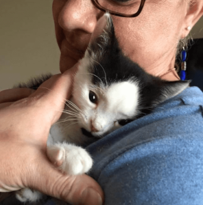 He was born with water on his brain and legs that were malformed, and no one wanted to take him in. They couldn’t see the cat because of the defects.