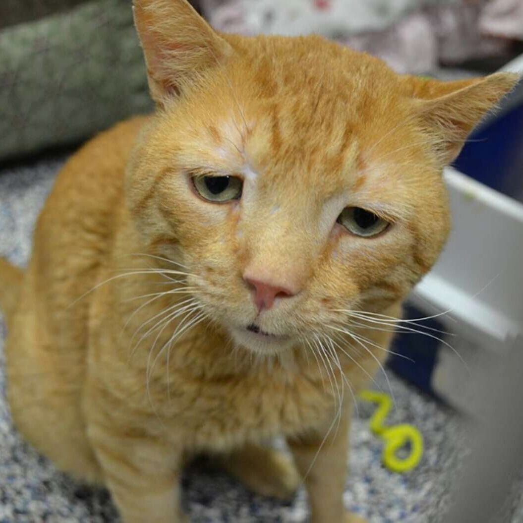 He was emaciated, his ears were scarred, and he had a painful nasal infection that made it hard for him to breathe.