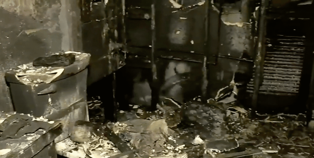 The damage to the house is extensive. The basement is gone. Much of the main level is scorched. Soot and ash have painted what’s left of the interior.