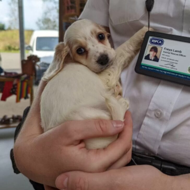 But someone had come. The person gently lifted the pup out of the bin and held her close. That’s when they saw her leg. It was twisted at an unnatural angle, clearly preventing her from walking properly. Her tiny body was weak, her spirit barely hanging on.