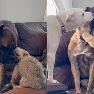 A few months ago, a Reddit user shared a touching video featuring his two dogs comforting their anxious canine sibling. The clip showcases Huxley, a small Shih…