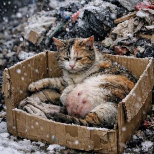 Why have people become this cruel… I found this mother cat, heavily pregnant, abandoned near a pile of trash. It had just started to snow. I was…