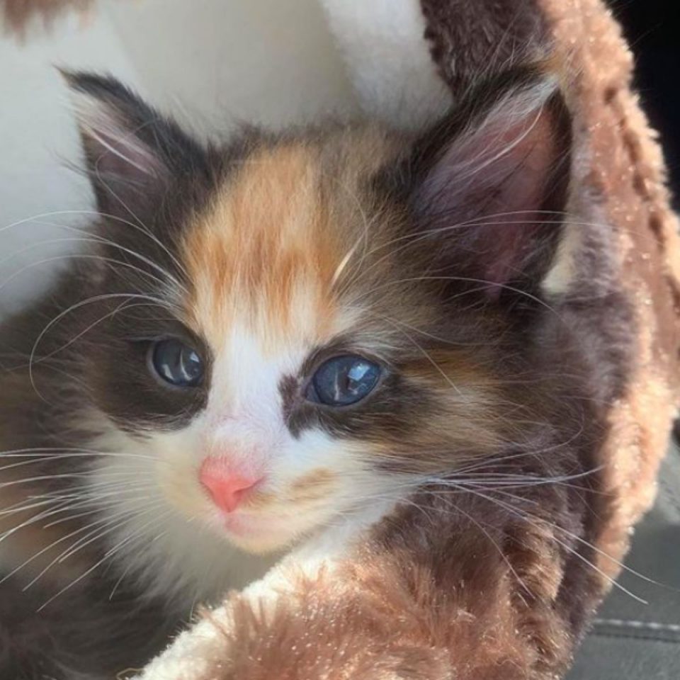 Meena was just a tiny calico kitten, left behind like she did not matter. She cried in tall grass behind the barn, starving, shaking, and completely alone….