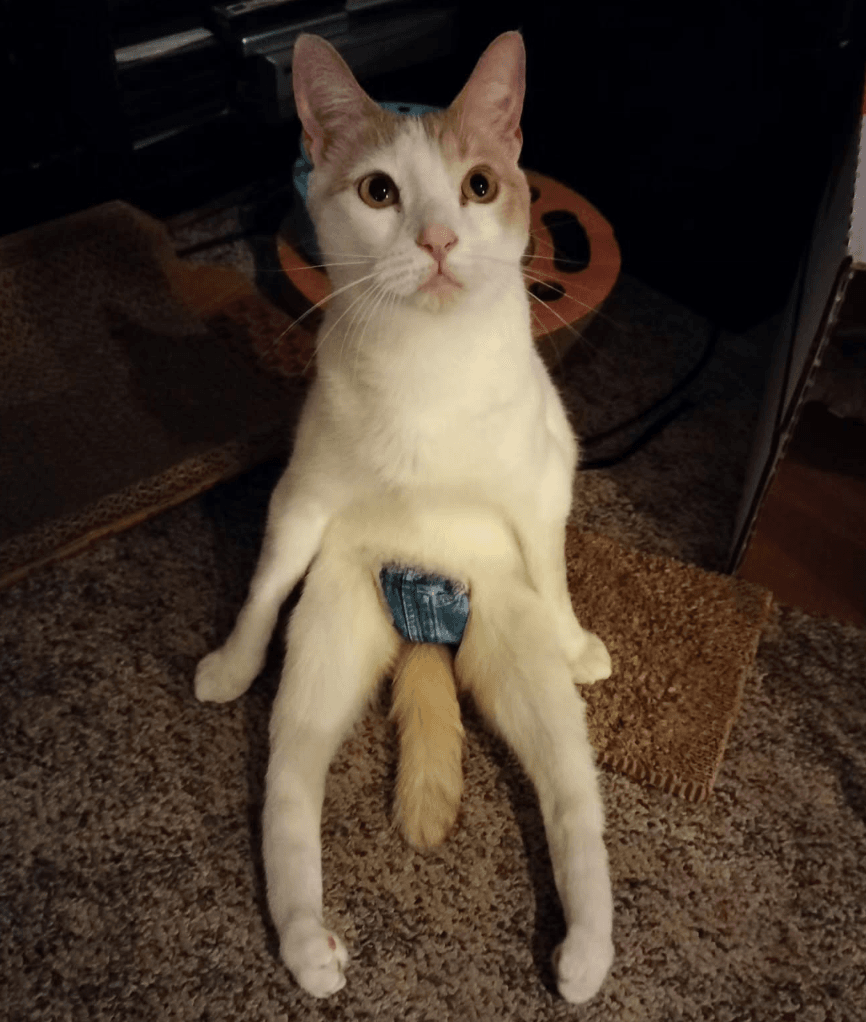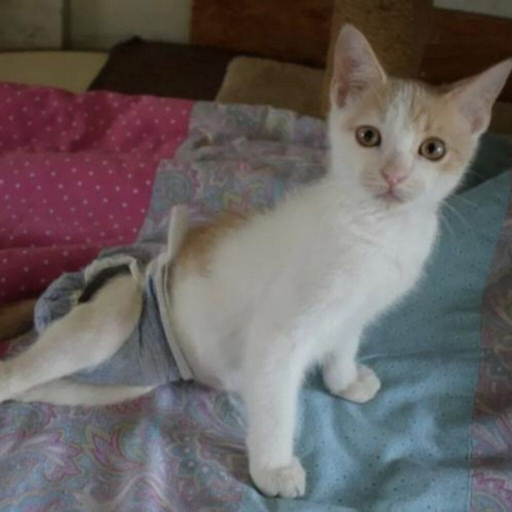 His back legs were paralyzed, leaving him unable to walk like other cats. He had wounds, digestive issues, and malnutrition.
