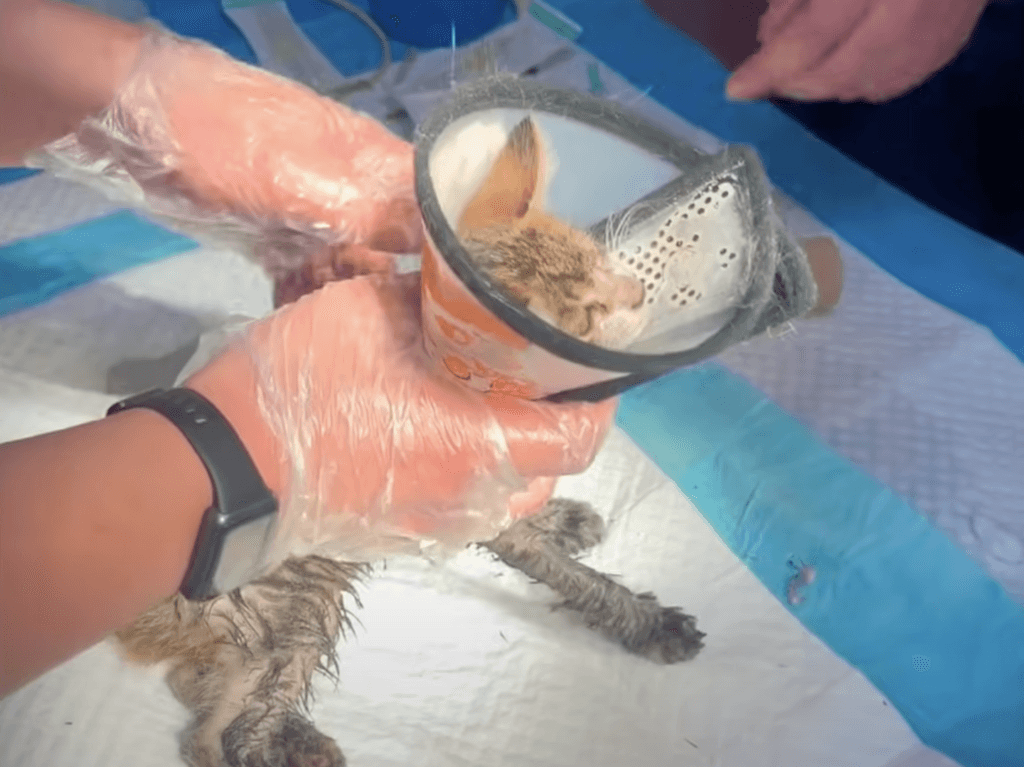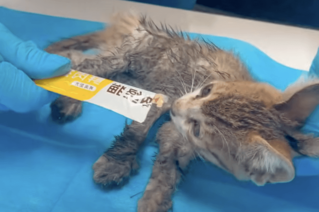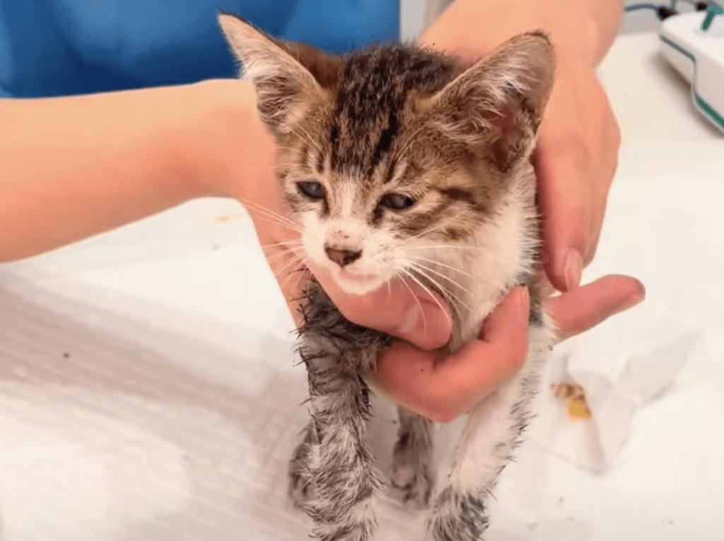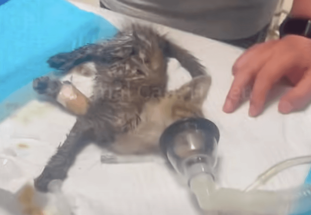 The kitten was quickly scooped up and taken to the hospital. The journey was urgent. He could barely breathe and was dangerously cold.