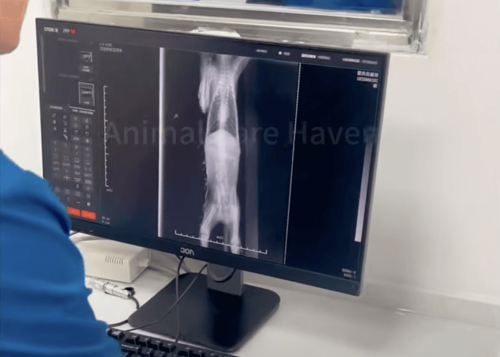 The vets wasted no time. X-rays were taken. He was given a warm meal.