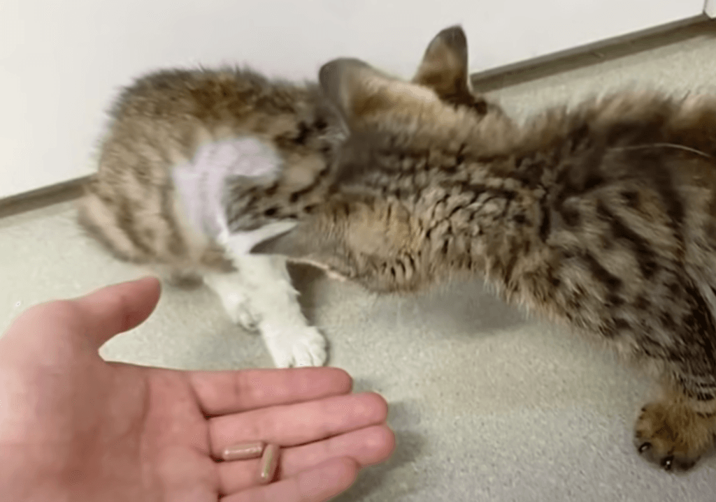 He would sneak around playing with IV tubes and wandering between rooms. He had gone from being a fragile kitten to the unofficial mascot of the clinic.