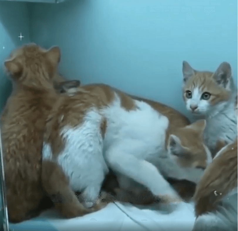 That night, the mother cat and her four kittens were safely rescued, with the kittens in good health, but the mother needing immediate medical attention for her injuries.