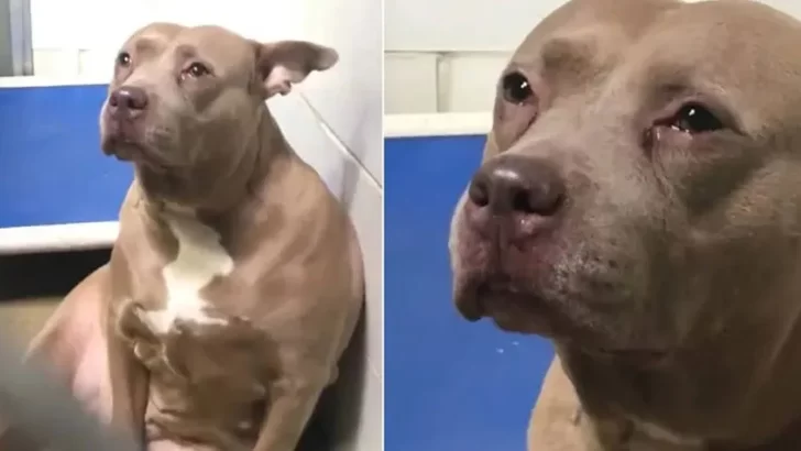 This heartbroken Pitbull caught the attention of a kind-hearted volunteer; who recorded a short video of her and shared it on Facebook.