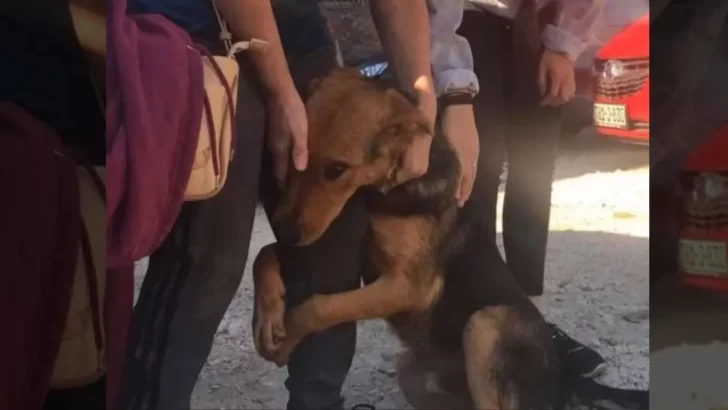 Two kind souls were crossing the street when they saw a dog clinging tightly to strangers, hoping for a touch of kindness. Even though people patted the dog, they just moved on, oblivious to the fact that she needed so much more.