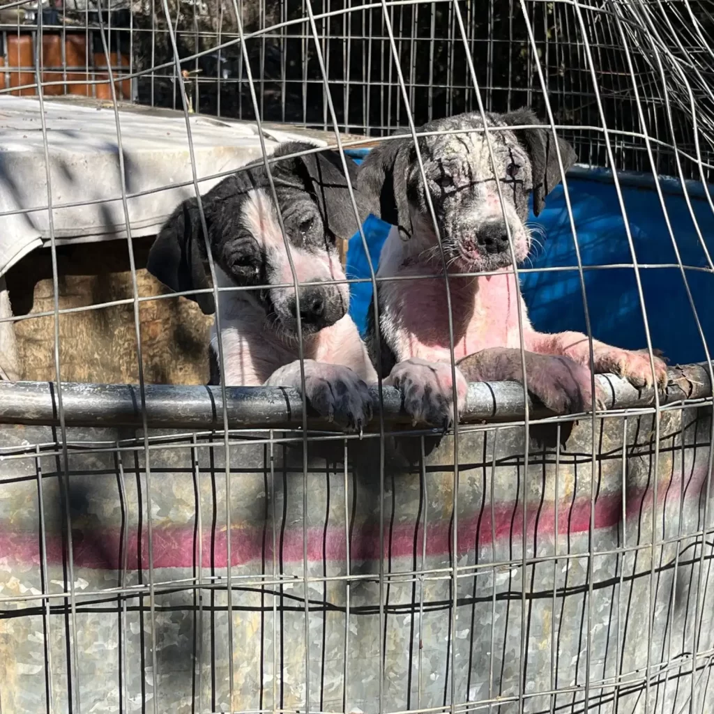 The two other dogs looked just as sick, their skin raw and nearly hairless, with a pink hue from irritation.