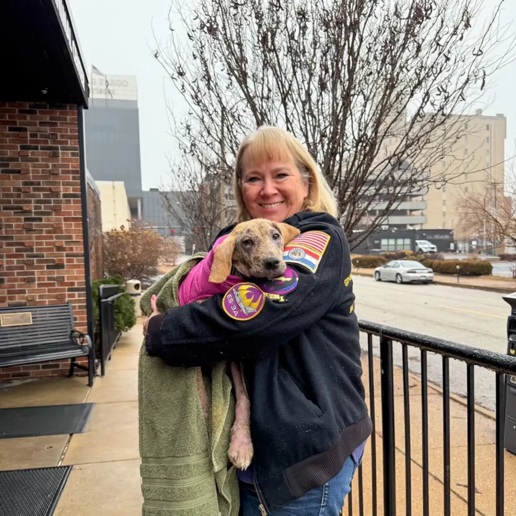On a quiet street in Missouri, a few watchful neighbors began noticing the same heartbreaking sight day after day — a tiny puppy wandering aimlessly, her fur missing in large patches.