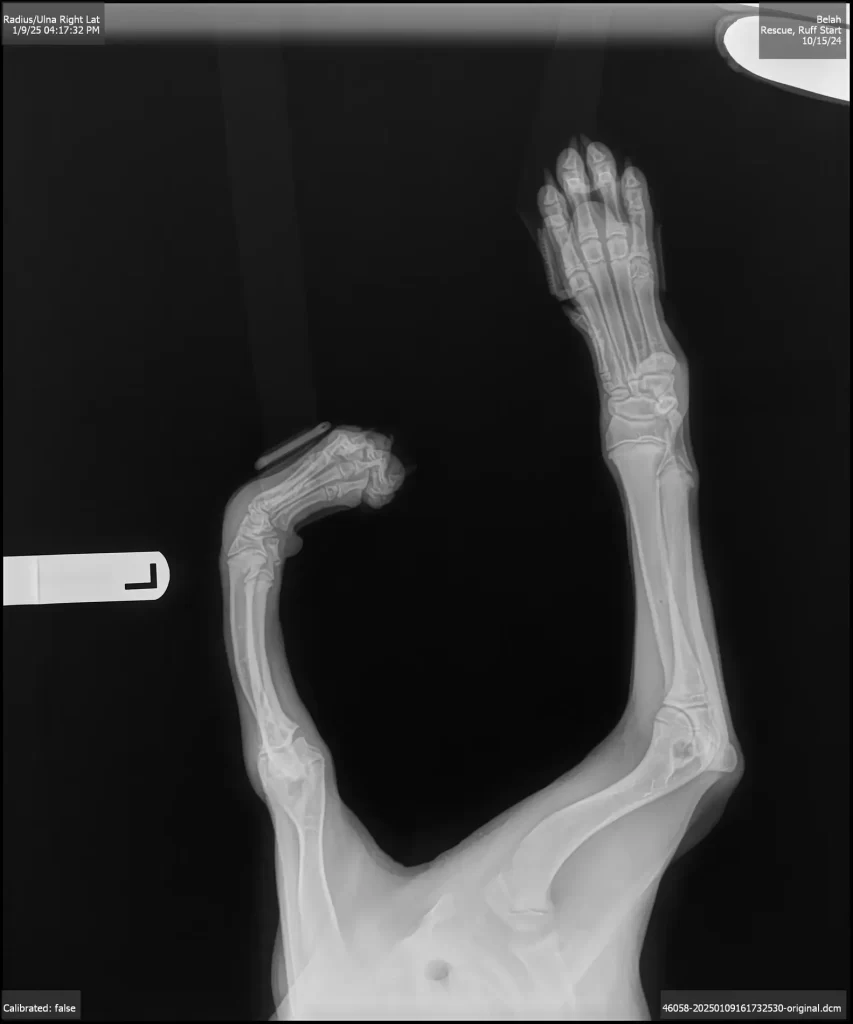 X-rays confirmed what the vet suspected — Belah had a condition from either birth or a past injury that caused both angular deformity and joint extension issues. Thankfully, none of it caused her pain. But without support, it could have led to future problems.
