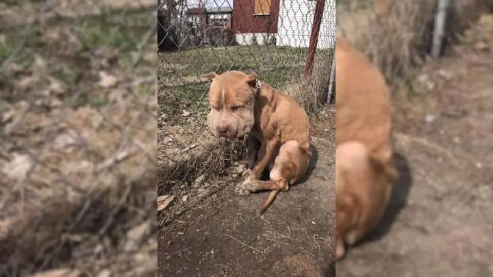He was tied tightly to a fence, his body weak and trembling, covered in deep bite wounds.