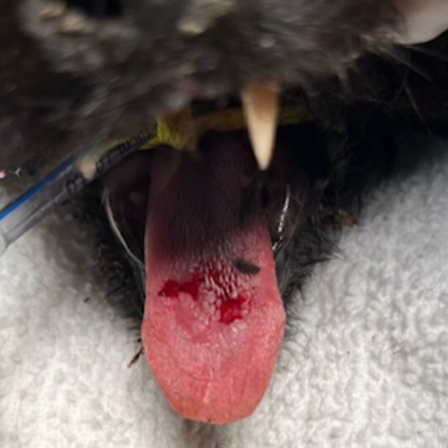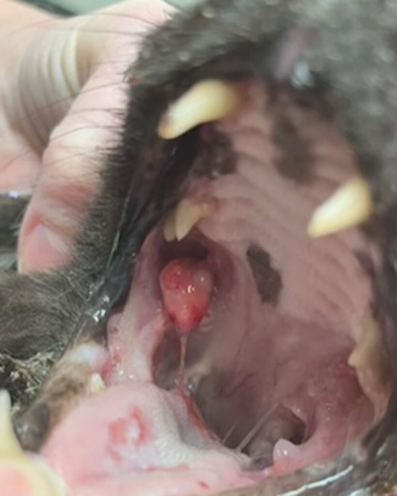 But as the vet worked through the knots, they made a disturbing discovery, a mass at the back of Aegis’ throat.
