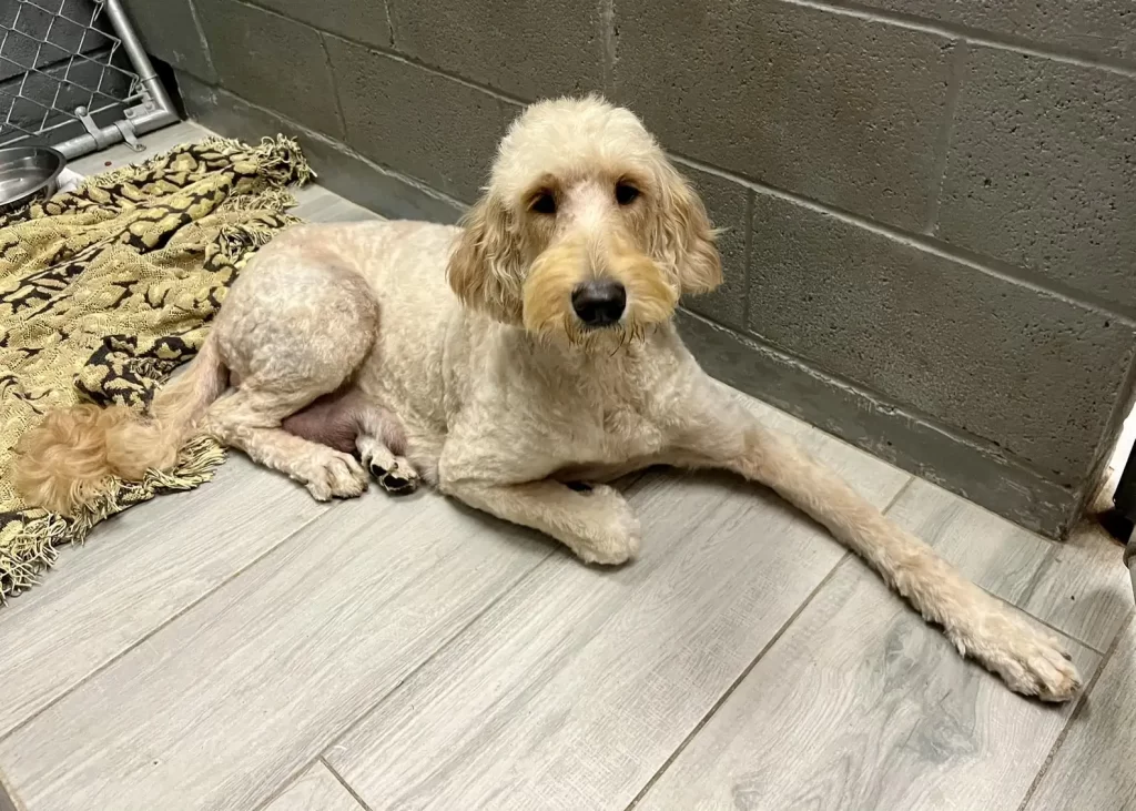 On the other end of the line, a stranger described a scene too painful to ignore: a small poodle mix tied tightly to a railing in a shadowy alley.