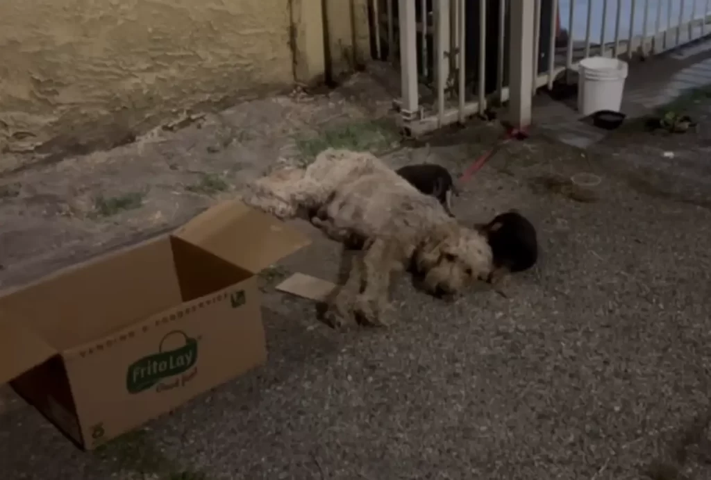 When he reached the alley, his heart fell. The mother dog was lying still on the hard ground, her spirit drained, while her babies stumbled in circles around her, unsure and frightened.